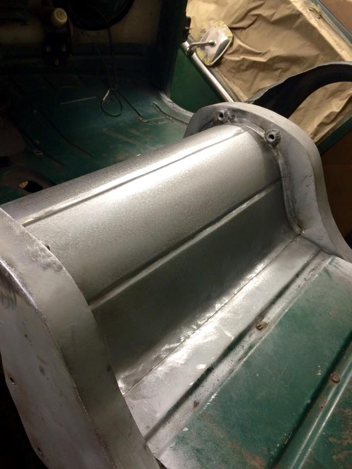 The car, a standard 55 originated in Denmark before coming over to the UK. At some point in its life it got painted a shade of blue, possibly dove blue. Straight after collection a call went out from Matty telling us he’s revealed an area of original paint and would we help stripping the paint back to reveal the original Jupiter grey…