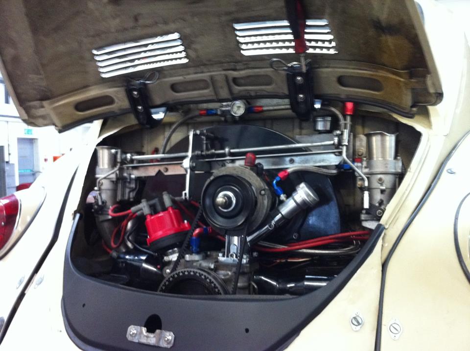 His 67 Sav beige uk rhd bug sports a 2276cc motor, 48 weber IDA’s, FK89 camshaft, CB 044 super magnum heads, MSD ignition with 6AL box, full autometer pro lite gauges, Simpson harnesses, 6 point roll cage with harness bar, disc brakes all around, rancho pro street transmission, Porsche pattern ercos up front and wide 5 pattern… you get the picture!