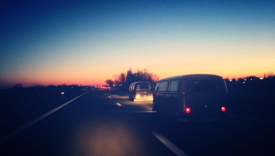Once in France, everything was running too smoothly, up until Petes bus shit itself. Actually the pulley decided to blow up. So after a couple of attempts to stick it back together with chemical metal, we realised it just wasn’t going to happen. So just as we were about to head off for a local town to look for a welder. Mike had a brain wave. the type 3 engine the 411 was running didn’t “need’ a top pulley. As on a type 3 engine its only turning the dynamo, not a fan like a t1 engine.